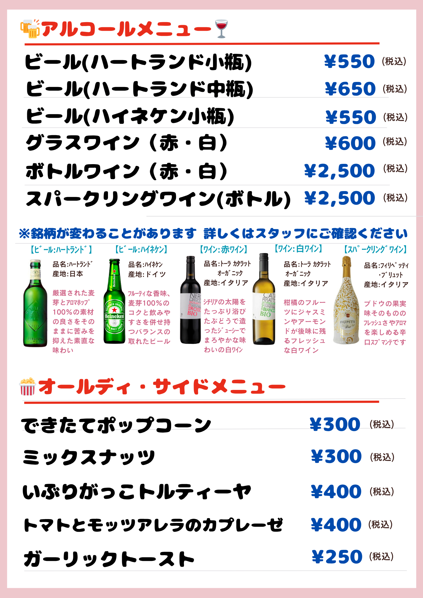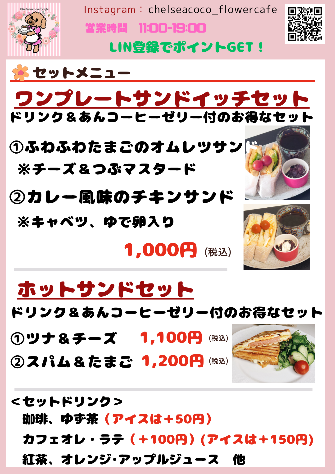 1,100円(税込) ドリンクなし 700円
